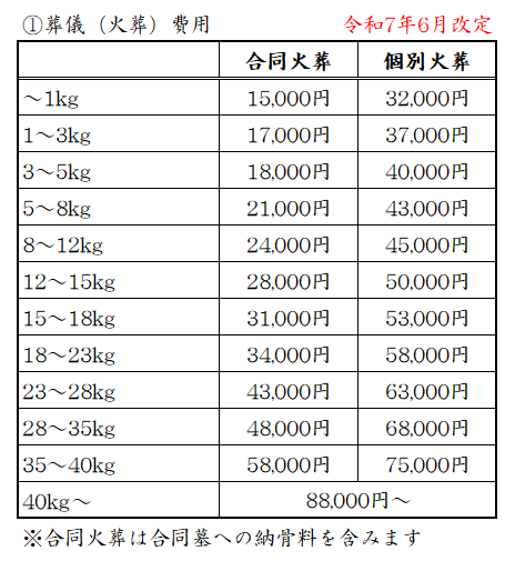 料金表 ◆葬儀・引取り ご自宅へ亡きペットをお引取りに伺い、お寺で読経ののち八事火葬場(名古屋市)にお連れすることもしています。 ※お寺へお越しいただけない場合、こちらからご自宅へご遺体の引取りにもお伺いします。 ◆法要 ◆納骨